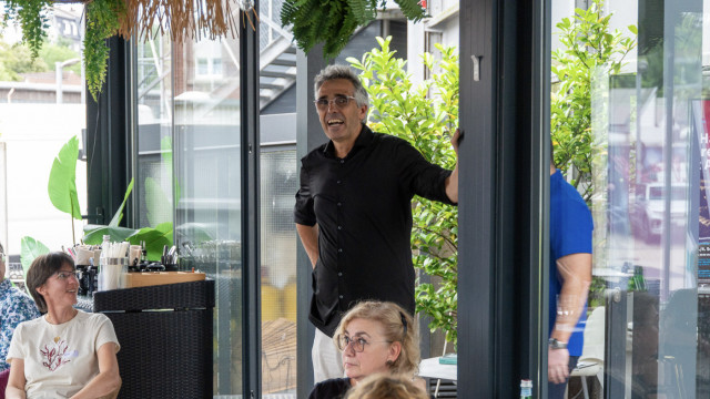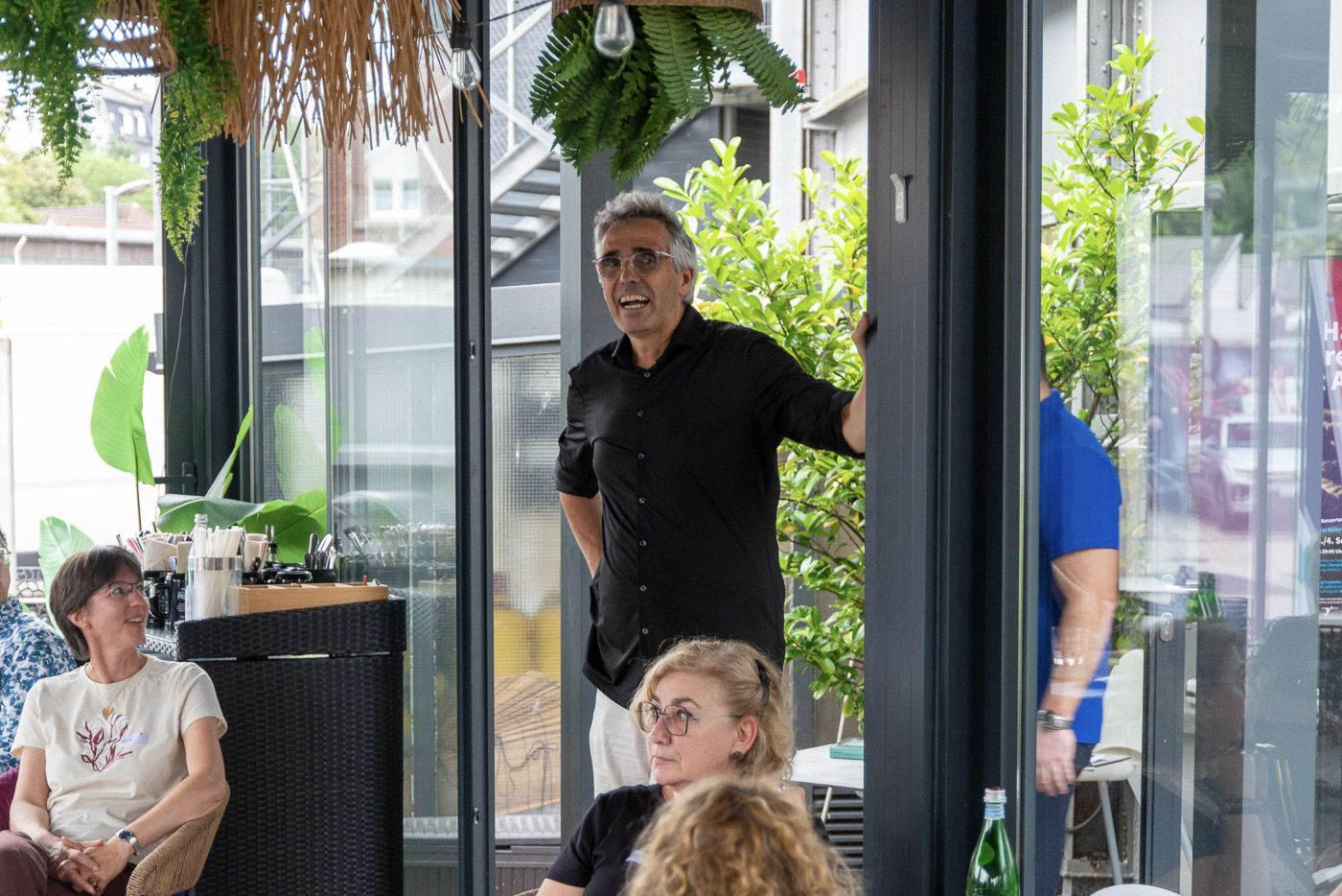 Am vergangenen Dienstag kamen rund 50 Gäste zum ersten Netzwerktreffen nach der Sommerpause im Wintergarten des Aposto zusammen – in entspannter Atmosphäre, bei einer Pizza und guten Gesprächen. Nach der Begrüßung durch Dirk Emde und Faton Zenuni, die als Geschäftsführer des Visiodroms über die Geschichte und das Konzept des Hauses berichteten, erwartete uns ein inspirierender Abend.