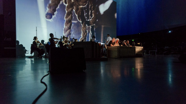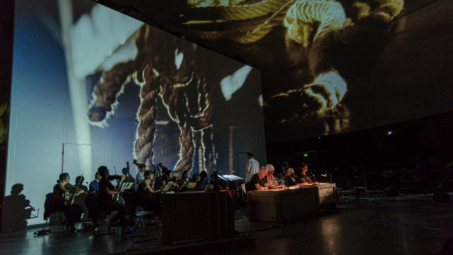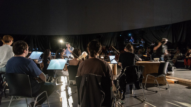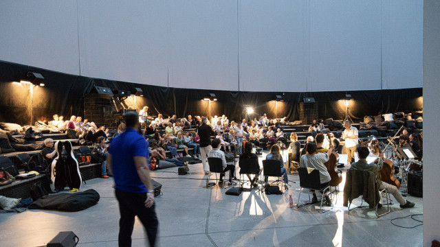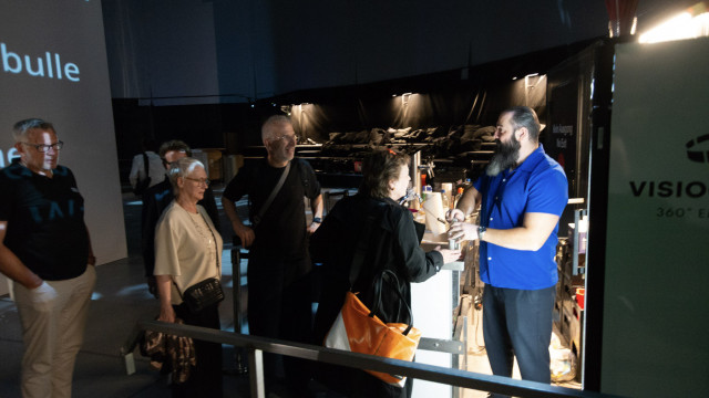 Wenig später stießen die Künstlerinnen und Künstler der Produktion hinzu: Regisseur Robert Sturm, der Oscar-nominierte Visual-Effects-Spezialist Frank Petzold, Prof. Werner Dickel, musikalischer Leiter und Dirigent des Schönberg-Ensembles, sowie Produzentin Kerstin Hamburg gaben persönliche Einblicke in die Entstehung und Gestaltung des neuen Bühnenwerks, das ab dem 2. September im Visiodrom zur Aufführung kommt.