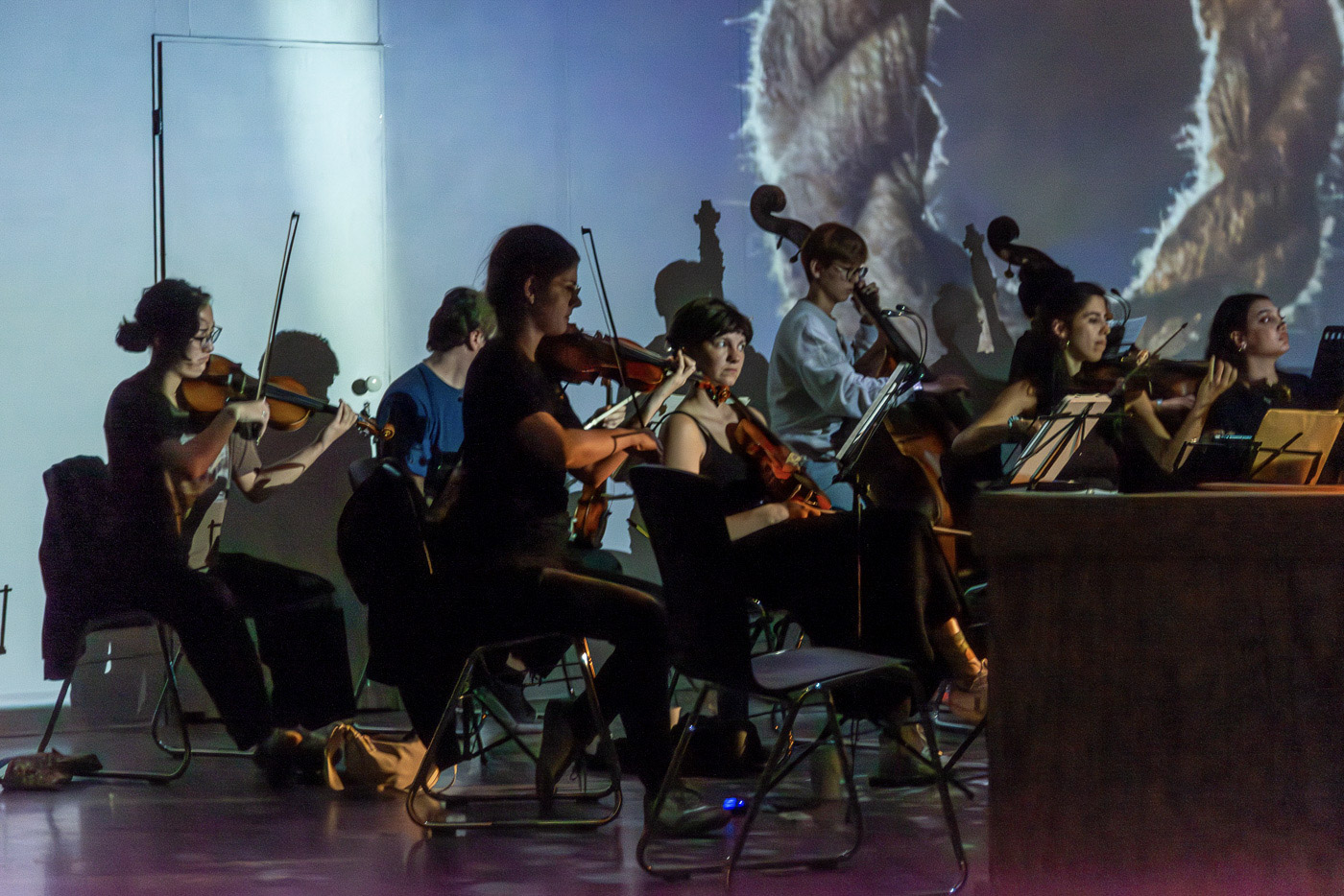 Die Projektionen basieren auf einem Bühnenbild des Bildhauers Tony Cragg, filmisch umgesetzt von Frank Petzold mit dokumentarischem Material von Ralf Silberkuhl. Die Musik stammt aus der Feder von Alexander Balanescu, international renommierter Violinist und ehemaliger Leiter der Michael Nyman Band. Gespielt wird sie live vom Schönberg-Ensemble der Hochschule für Musik und Tanz Köln, Standort Wuppertal, unter der Leitung von Prof. Werner Dickel.