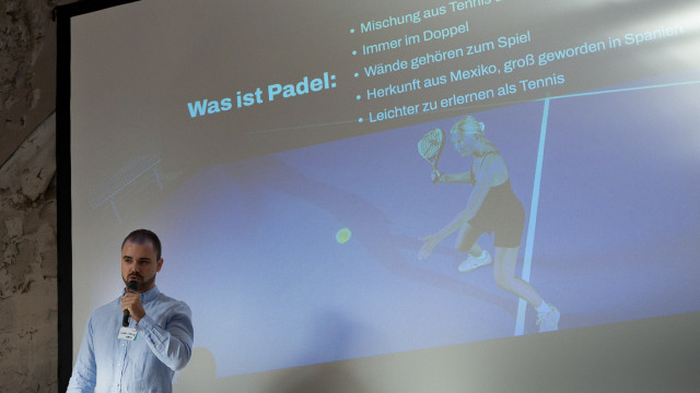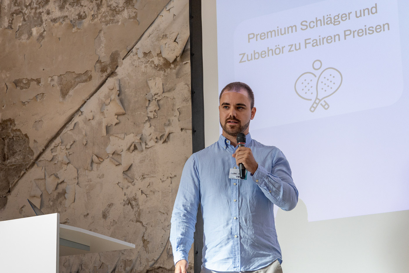 Vom breiten Netzwerk im codeks profitieren auch Startups wie der XTR3M Sports GmbH. Operation Manager Lukas Osburg stellte das junge Unternehmen vor, das umfassender Anbieter für die Trendsportart Padel werden möchte. Die Mischung aus Tennis und Squash wird in Europa zunehmend beliebter. Das junge Team will in den wachsenden Markt einsteigen und ein Abo-Modell für B2B-Kunden aufbauen, denen sie Schläger, Bälle und weitere Ausrüstung vermieten. Auch beim Bau von Plätzen will das Startup mitmischen. „Nach zwei Monaten im codeks habe ich das Gefühl, dass ich hier mit allen Leuten zusammenarbeite, nicht nur mit denen aus meinem eigenen Team“, beschreibt Osburg den besonderen Spirit unter den codeks-Mieter*innen.