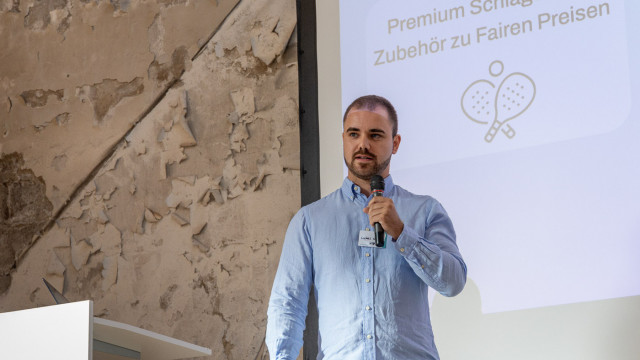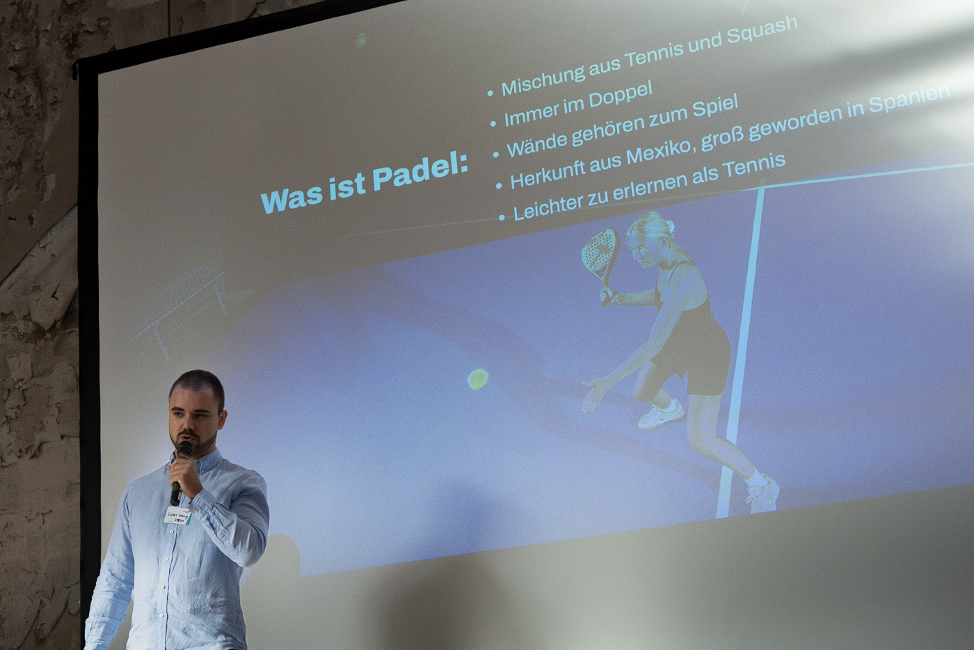 Vom breiten Netzwerk im codeks profitieren auch Startups wie der XTR3M Sports GmbH. Operation Manager Lukas Osburg stellte das junge Unternehmen vor, das umfassender Anbieter für die Trendsportart Padel werden möchte. Die Mischung aus Tennis und Squash wird in Europa zunehmend beliebter. Das junge Team will in den wachsenden Markt einsteigen und ein Abo-Modell für B2B-Kunden aufbauen, denen sie Schläger, Bälle und weitere Ausrüstung vermieten. Auch beim Bau von Plätzen will das Startup mitmischen. „Nach zwei Monaten im codeks habe ich das Gefühl, dass ich hier mit allen Leuten zusammenarbeite, nicht nur mit denen aus meinem eigenen Team“, beschreibt Osburg den besonderen Spirit unter den codeks-Mieter*innen.